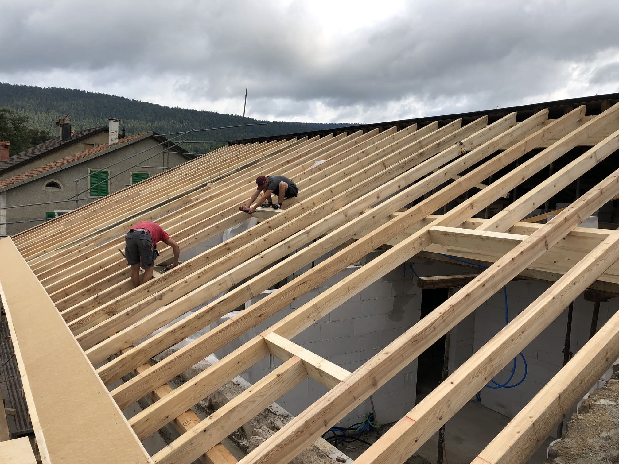Reprise de la partie charpente par Gael et Sylvain, fils de Roger Buchs